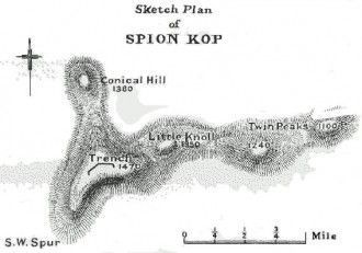 Битва за Спион-Коп — сражение второй англо-бурской войны за холм Спион-Коп 24 января 1900 года. После неудачи при Коленсо британский генерал Редверс Буллер предпринял попытку форсировать Тугелу в 30 километрах выше по течению. 16—18 января его части переправлялись через реку, после чего вступили в бой с бурами, успевшими сформировать фронт. К 22 января попытки фронтального прорыва были признаны безуспешными, и ставка была сделана на внезапный захват господствующей высоты в цепи крутых холмов, Спион-Копа. В ночь на 24 января британские полки сумели застать врасплох защитников Спион-Копа, и те отступили с плоской вершины. Утром буры контратаковали, после чего весь день на вершине шёл изнурительный окопный бой. К вечеру обе стороны посчитали себя проигравшими и в темноте отступили. Несколько буров остались на вершине, просигнализировали товарищам об отходе британцев, и буры снова поднялись на Спион-Коп. Британцы отступили за Тугелу.
