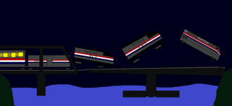 "Это произошло 22 сентября 1993 года недалеко от города Мобил в штате Алабама. Как это часто бывает, баржа оказалась не в то время, и не в том месте. А именно — в притоке реки Мобил под названием Биг Баю Канот. В густом тумане лоцман буксира-толкача «Мовиллы» даже не понял, что ошибся поворотом и попал в несудоходный приток. Примерно в 2:45 утра его судно пытается пришвартоваться и врезается сначала в опору моста, а потом и в его центральную часть. 84-летний мост выдерживает. На этом бы неприятной истории и закончиться, но нет. Оказывается, изначально планировалось, что мост будет разводным. Причем, не раскрывающимся, как, скажем, Дворцовый в Санкт-Петербурге, а поворотным. Поворотный механизм моста через Биг Баю Канот не доделали, в итоге центральная ферма держалась только за счет силы трения. От второго удара баржи она сместилась аж на метр. Рельсы сильно изогнулись, но выдержали. Именно из-за этого не сработал семафор: рельсовые цепи не были нарушены, и он не переключился на красный. Трансконтинентальный поезд «Сансет Лимитед» с 220 пассажирами должен был проехать через мост примерно через 8 минут. Примерно в 2:53 утра он на скорости 116 км/ч врезался в сдвинутую центральную часть, столкнув пролет в воду. Головной вагон долетел почти до противоположного берега. Два следующих вагона тоже упали в реку, и один почти сразу ушел под воду. Дизельное топливо поезда вылились в реку и загорелось. для полноты картины — заболоченный Биг Баю Канот кишел аллигаторами и змеями.