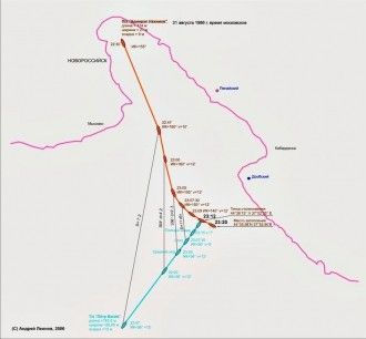 Несколько слов о месте катастрофы – Цемесской бухте. Сама бухта имеет форму гигантской подковы. Курсы пассажирских судов, плавающих на Крымско-Кавказской линии, безукоризненно отлажены. Отойдя от причала Новороссийска, «пассажиры» сворачивают вправо, и минуют бухту и затем идут вдоль побережья на сравнительно небольшом (несколько миль) расстоянии от него. Суда, идущие с моря, пересекают этот «пассажирский» курс. Таким образом, пересечение курсов (но не столкновение!) «Нахимова» и «Васева» было предопределено.