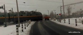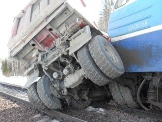Хотя переезд оборудован автоматическими шлагбаумами, в этот день производился ремонт оборудования, поэтому движение автотранспорта регулировалось вручную. В момент столкновения, по словам очевидцев, шлагбаум был поднят. Водитель грузовика ""Скания"" из-за сильного снегопада не заметил приближающуюся электричку и со скоростью около 25 км/ч выехал на переезд. С этого места видно лишь небольшой участок железнодорожного полотна: дорога здесь круто изгибается, а вдоль нее растет много деревьев. Когда из-за поворота вылетела электричка, прицеп еще находился на рельсах. Машинист поезда, двигавшегося со скоростью около 80 км/ч, затормозить не успел. В результате сильного удара головной вагон электрички, развернувшись на 180 градусов, полетел под откос. Сильные повреждения получил и второй вагон.