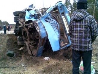 Прицеп оторвался, и лежавшие в нем коробки (грузовик вез аудио- и видеотехнику фирмы LG) разбросало вдоль дороги на несколько десятков метров. По счастливой случайности оба водителя грузовика отделались легкими ушибами.