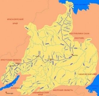 Крупнейшие притоки: Синяя, Витим, Алдан, Нюя, Олекма, Вилюй, Киренга, Чуя. Молодо, Муна.